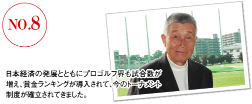 1962年に初優勝して以来、勝利を積み重ねる杉原輝雄プロ。90年までのツアーで勝てなかった年は、76年と87年だけ。最低1勝、多い年は5勝していました。「いくつ勝ったから満足、というものではありません。プロとしていくらでも勝ちたいし、稼ぎたいです。71歳になった今も勝ちたいという気持ちはあります」