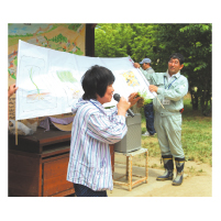 「お米を育てるには、何が必要かな?!」といった、稲に関することや田んぼにいる生物の話をしてくれました。子どもたちの知的好奇心も刺激されたのか、すぐに田んぼに生き物探しや観察を楽しむ子どももいました。