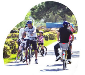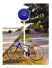■自転車および歩行者専用の標識がある場所では、通行はできますが、 歩行者優先。すぐに停止できる速度で走行、歩行者の通行を妨げ る場合は一時停止のこと。