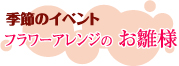 ![]() 参加費:3,500円 ( 花・花器代+ティータイム付) 日程:2月25日(木)、26日(金) 時間:10:30〜、13:30〜 募集人数:各10名 場所:グリーンフィンガーズ (夙川グリーンタウン内) |