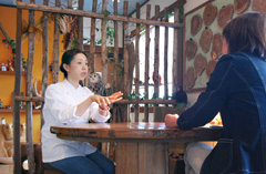 現在の工房兼店舗の前に、夙川で開店していましたが、その頃から、トトロが出てくるような店を造りたいと思って、インテリアや小物を買い集めていました。それらに合わせて、テーブルを作ってもらったんですよ。ゆっくりくつろいでいただきたいですし、音楽会や講演会などのイベントにも使っていただきたいなと思っています。