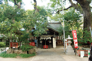 | 万葉時代、津門周辺は「津努(つぬ)の松原」と称された名勝でした。古来、天神(あまつかみ)を祀っていたこの地に、太宰府へ向かう菅原道真が立ち寄り、佳景を愛でたのが縁で、後に合祀され今の松原神社となりました。 東南にある「史蹟漢織呉織松、染殿池」は、応神天皇の時代、縫工女として来朝した漢織・呉織が故国を偲んだ場所と伝わります。また、池のそばには織姫大明神をお祀りした喜多向稲荷神社があります。 |